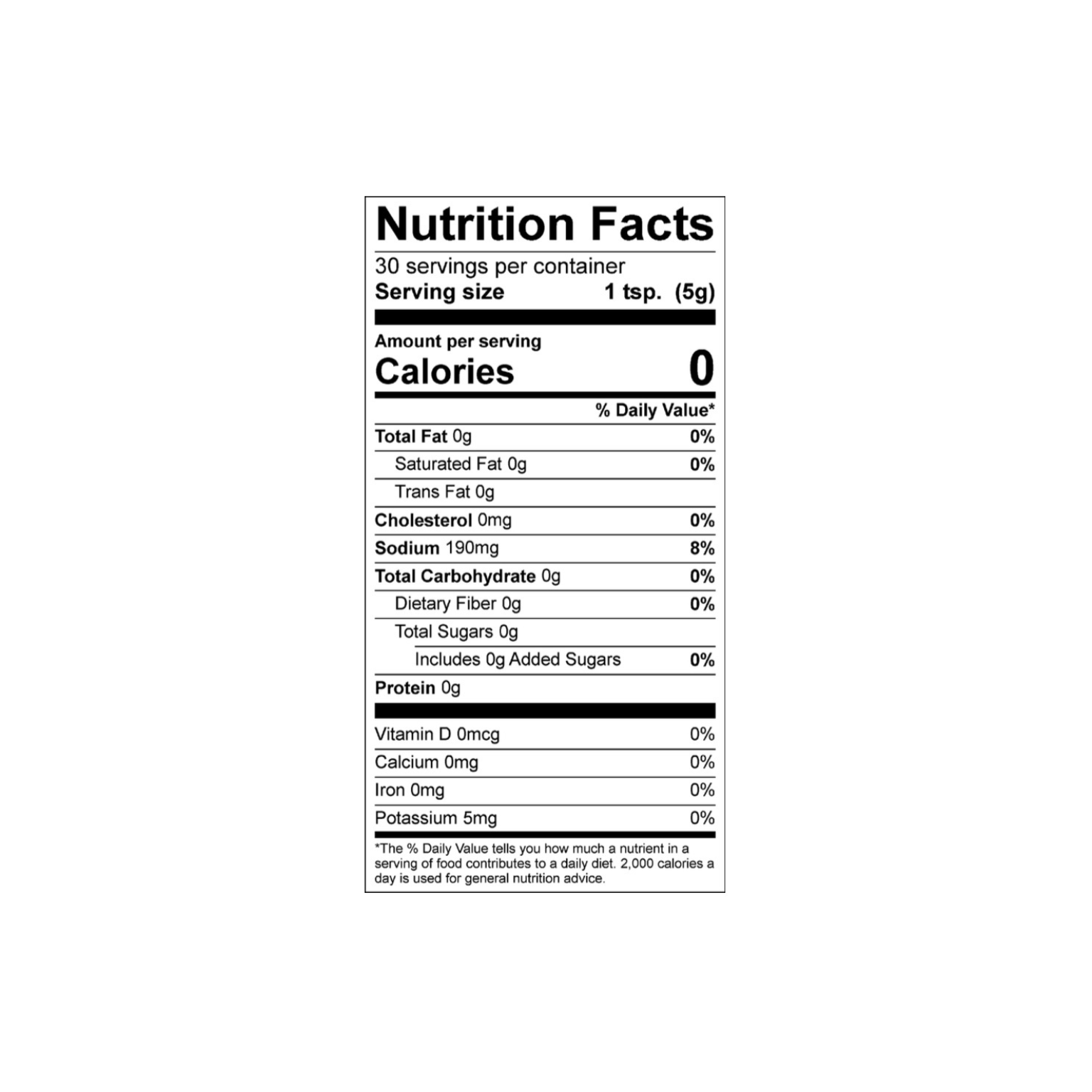 Salt, Black Pepper, Cracked Red Pepper, Dehdyrated Garlic, Granulated Onion, Sweet Smoked Paprika, Less than 2% Tri-Calcium Phosphate (to prevent caking)